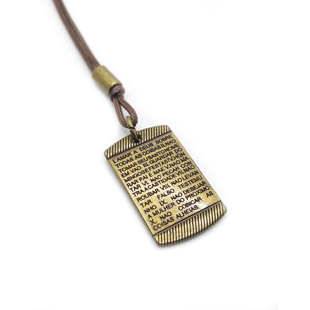 Pingente e ferragens: metal com banho ouro envelhecido, gravado com os 10 mandamentos em alto-relevo. Protegido por 2 camadas de verniz italiano autêntico para maior durabilidade.