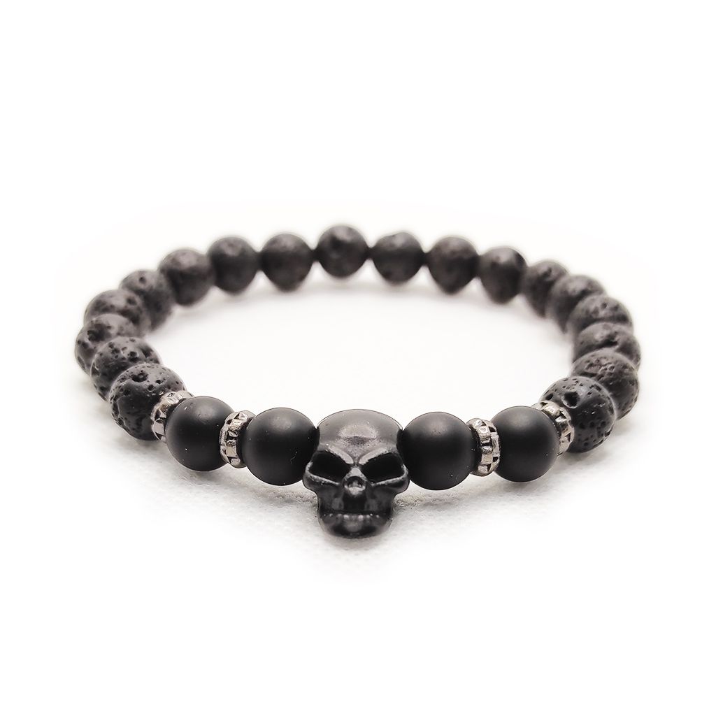 As pedras vulcânicas simbolizam resistência e transformação, forjadas pelo poder do fogo e da terra. A ágata fosca reforça o conceito de proteção e equilíbrio, enquanto a caveira preta representa coragem e destemor. A Death Vulkano foi criada para homens que carregam a força dos elementos e a determinação de quem não teme a escuridão.