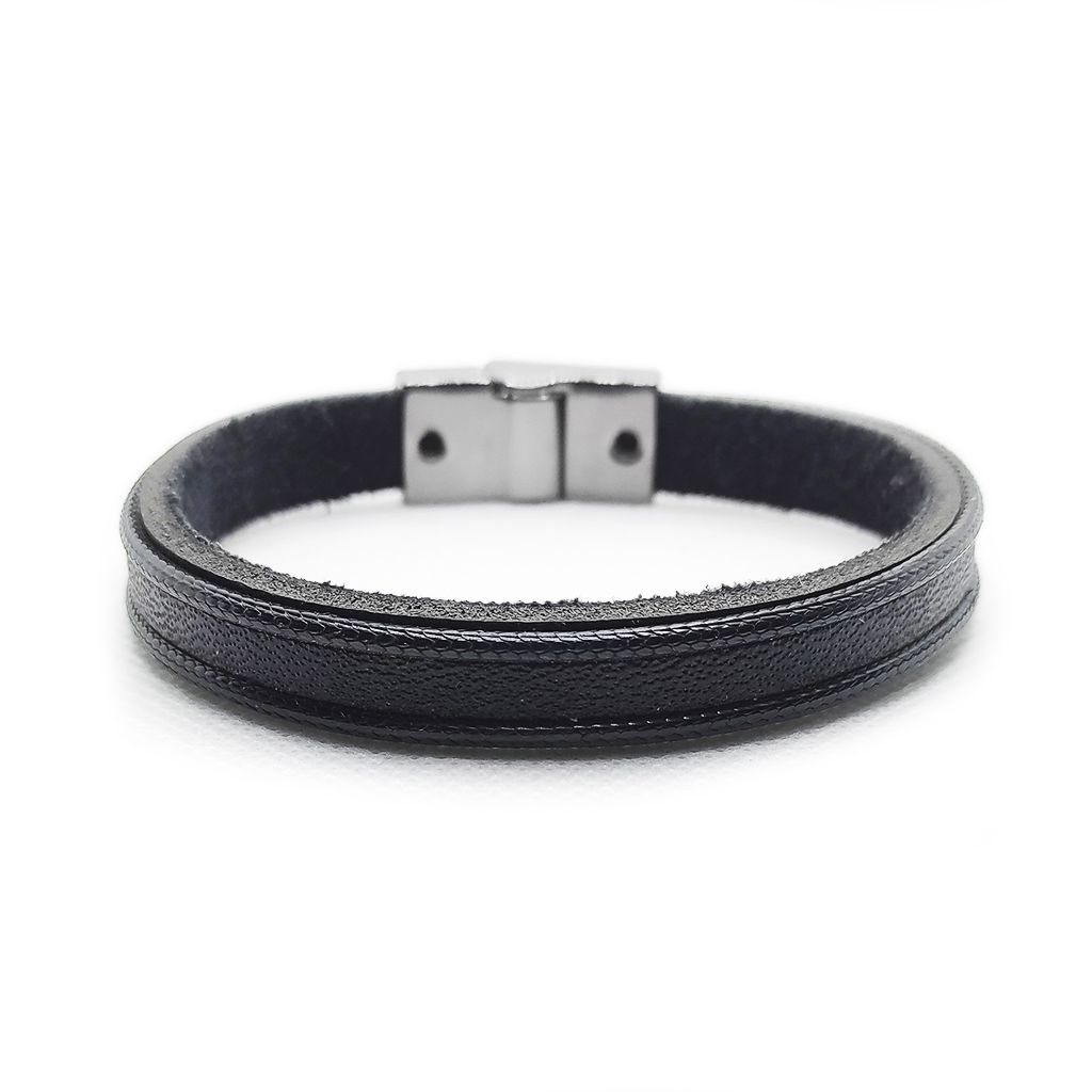 A Grécia Black é a versão sofisticada e moderna da linha Grécia. Produzida com couro padrão de 10 mm, conta com uma tira de couro natural aplicada por cima e dois fios de algodão encerado de 2 mm, criando contraste de texturas. Os acabamentos metálicos em aço com banho duplo de verniz italiano no tom grafite adicionam um visual contemporâneo e marcante à peça.
