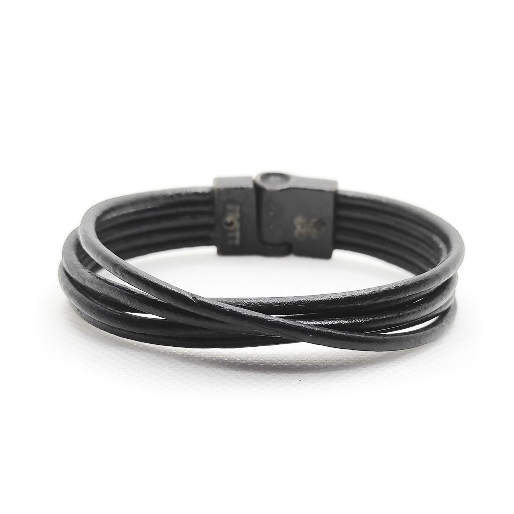 A Minimol Black é uma pulseira de estética minimalista e impacto visual marcante. Produzida com cinco tiras de couro natural roliço na cor preta, ela é finalizada com um fecho magnético em acabamento preto fosco, que reforça seu estilo moderno e discreto. O design limpo e versátil permite que ela se adapte facilmente a diferentes estilos e ocasiões.