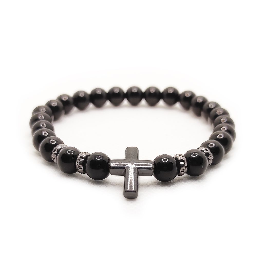 A Rolld Gray é uma pulseira confeccionada com pedras naturais de ágata preta de 8 mm, valorizadas pelo seu tom profundo e imponente. Montada em elástico ultra resistente, conta com entremeios e cruz central em acabamento grafite, criando um visual moderno e impactante.