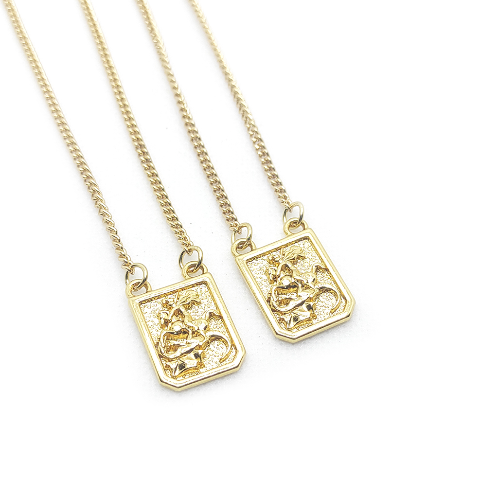 Inspirado na figura de São Jorge, conhecido por sua bravura diante dos desafios e sua luta contra o mal, o escapulário é um lembrete visual de força interior e determinação. A versão dourada evoca nobreza, luz e imponência, tornando o acessório não apenas espiritual, mas também marcante na composição estética.